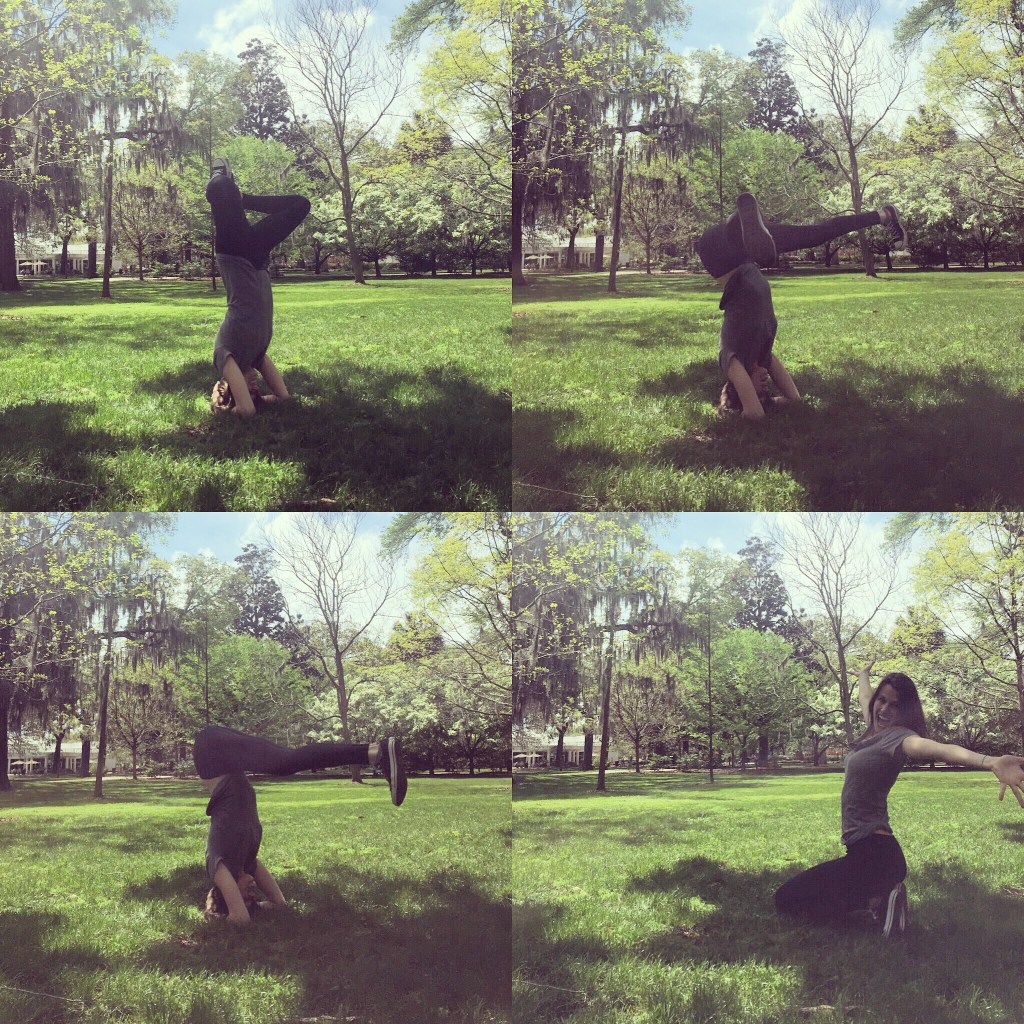 I don’t have any fancy or formal yoga photos to share, so you’ll just have to accept this series of handstands captured by my friend Emily while we lolled in the lush grass in a park in Savannah, Georgia some years back.